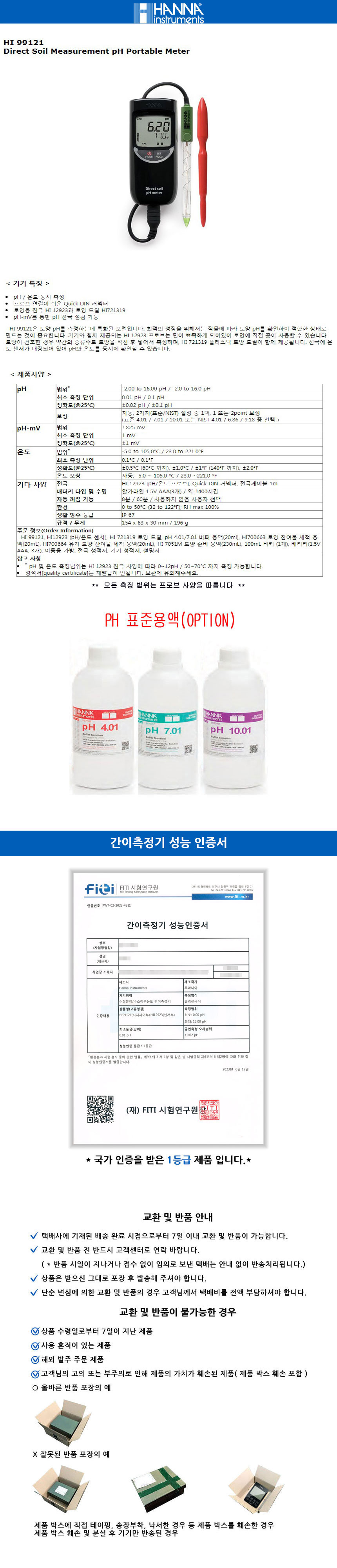 • 자동으로 기기를 보정하기 위해서 여섯개의 메모리 된 버퍼용액중에서
